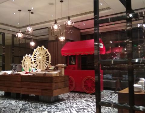 ...人心情放松,自助餐品种较多的,里面的甜点味道还不错的,小巧精致,饮品一般的,其他菜品味道还行的