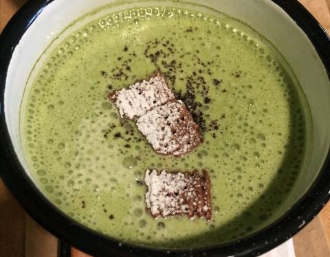 一式意面,有点酸过头,第一口不太喜欢,没想到后来还觉得挺开胃的,里面有虾,不多。 小飞翅,有点咸,但是重口味的刚好。 抹茶北海,就是抹茶,上面加的是威化饼干,以为是巧克力,这个很喜欢喝,味道不错。