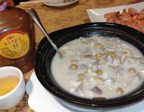 - ...厅用餐,好多人,点了流沙包,虾饺,西洋菜猪血汤,皮蛋廋肉粥,凤爪,3人吃好饱,支付宝支付棒棒的