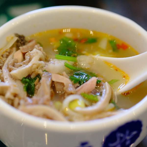 主要说说包子吧:用小伙伴的话讲这个包子吃过之后你绝对会记住这股特殊的味道。老范吃过之后觉得这股味道似曾相识,又想不起在哪里吃过了。艾玛具体味道我也回忆不大上来了,大家可以访问我的博客白云飘飘刀抗母……然后是羊杂汤,料很足,汤很鲜。总之包子+羊杂的组合绝配。