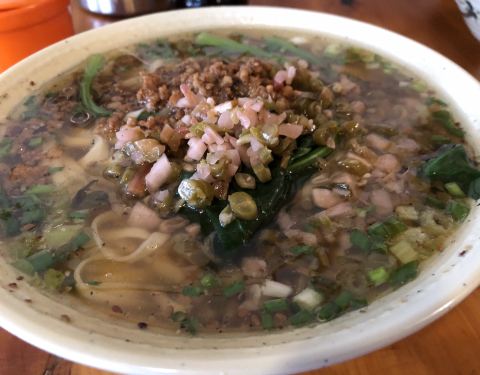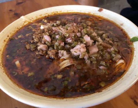是在一次电视节目中了解到这小吃店的,说是网红店。今天到彭州办事,就特意过来,感觉还是不错。首选是店堂比较干净明亮,这是一个小吃店的基础,其次是老板店员态度都很好,虽说是网红,生意很好,不愁生意,但一个店的服务态度决定了其层次,第三就是品种比较齐全,而且还有创新,比如熬锅肉面,在别的店就很少有,还有就是,每种面条允许顾客任意选择两种苕子,这也是创新,第四点,味道很好,这是一个小吃店的根本。