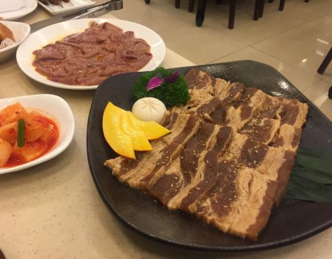 - ...用传统的碳炉烧烤,肉片调味很好,肉品不错,新鲜,有嚼头,味道鲜美可口,配上一些鲜族拌菜非常好吃