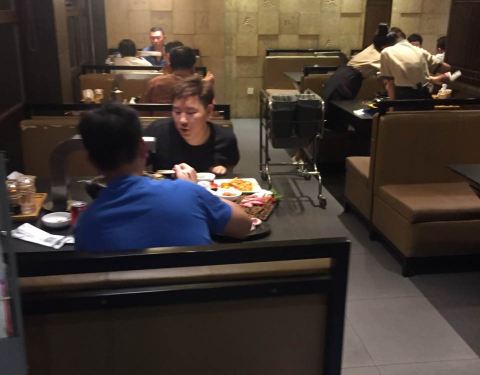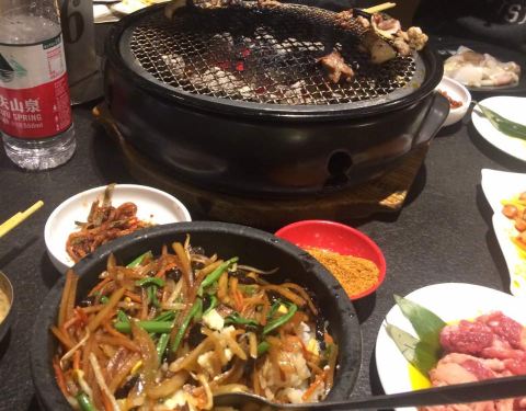 这家烤肉店盘肉的量还是比较足的,瘦肉相对好一些,黑胡椒牛肉定是这里的特色,胡椒,盐,砂糖味道配合得很不错,烤好一块肉之后几乎不蘸调料也很好吃。棒鱼干是不错的,篦子一加热,鱼干开始收缩,快速翻面,稍一变色就可以吃,越嚼越香,配啤酒真是棒极了。早期拌冷面味道十分特殊,甜味重辣味轻,面很干,十分容易入口,现在味道转了,偏辣不说还有汤,牛小排味道也不错。烤干棒鱼是沈阳少有的价格公道。