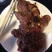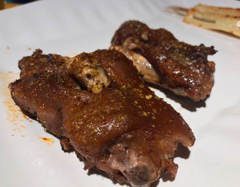来这里吃烧烤,人均60左右就足够了,分量是很足的,以至于味道很好,我们都不小心点多了没吃完,打包回朋友家,冷了再加热就不好吃了,所以建议大家量力而行,不要一次点太多,不足的话可以随时补点。烤猪蹄,单个12元,这个很推荐,本身猪蹄中间被切开,皮烤制的外脆里嫩,香料也很多都入味了,推荐大家尝试,不过吃1个就好,多了很容易腻,里面是满满的“胶原蛋白”质感招牌的烤鸡头,说实在有点吓人来着,没有预期的好吃,大家可以选择性的来点尝试,最少4个起点面包片,推荐度一般,因为这个太吸油了,吃起来很腻。这家的馒头片很好吃,推荐尝试,就是很上火,控制食量食物分了很大,一串顶小店2串的量,物有所值