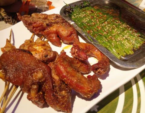 爆烤鸡头王这家是整个东北地区的总店,人气非常旺,如果冬天你去沈阳,傍晚后会发现路边的人很少了,因为天气寒冷,但是到了大西菜行这片烧烤街,会发现人气很旺,大家放佛都到这里来觅食了,而鸡头王则是人气最旺的一家,这里的烤猪蹄、脆骨、肉筋和鸡头都很赞,价格便宜量又足。 来这里吃烧烤,人均60左右就足够了,分量是很足的,以至于味道很好,我们都不小心点多了没吃完,打包回朋友家,冷了再加热就不好吃了,所以建议大家量力而行,不要一次点太多,不足的话可以随时补点。烤猪蹄,单个12元,这个很推荐,本身猪蹄中间被切开,皮烤制的外脆里嫩,香料也很多都入味了,推荐大家尝试,不过吃1个就好,多了很容易腻,里面是满满的“胶原蛋白”质感招牌的烤鸡头,说实在有点吓人来着,没有预期的好吃,大家可以选择性的来点尝试,最少4个起点面包片,推荐度一般,因为这个太吸油了,吃起来很腻。这家的馒头片很好吃,推荐尝试,就是很上火,控制食量食物分了很大,一串顶小店2串的量,物有所值