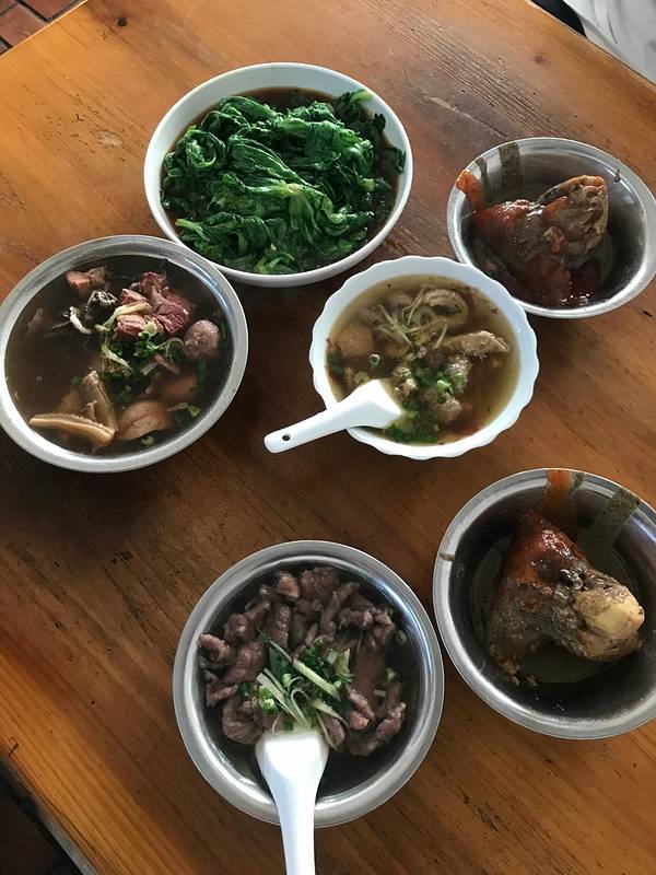 位置就在入住酒店的对面,点了牛排、牛肉羹汤、干拌面、牛肚汤、拌青菜……点餐时自己去找到位置做好,会有人过来给你点餐的 味道嘛感觉牛肉羹性价比最高,一盆的满满当当都是牛肉,而且才10块一碗。牛排一份32里面有两块牛排,味道还可以就是感觉不够烂。另外那个干拌面里的花生酱味道还可以就是感觉口感甜了一点,拌青菜小份的也不少。等以后有机会时再来试试其他的味道