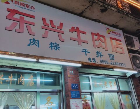 这家东兴牛肉,算是泉州的老字号小吃必吃榜上的一员。 [薄荷]环境:典型的泉州老店,虽然是老店但却不是很破旧的那种,而且位置就在泉酒对面旁边都是珠宝行和服装店。 🍱菜品:菜品其实不算多,但是样样是招牌,...这家东兴牛肉,算是泉州的老字号小吃必吃榜上的一员。 [薄荷]环境:典型的泉州老店,虽然是老店但却不是很破旧的那种,而且位置就在泉酒对面旁边都是珠宝行和服装店。 🍱菜品:菜品其实不算多,但是样样是招牌,|干拌面^看图就知道多诱人,他们家招牌拌面的特色是加芝麻酱,还是那种黑芝麻酱,吃起来很香。|牛肉羹^清汤搭配大块的牛肉羹汤鲜美肉羹Q 弹爽脆,|牛排^焖得软烂入味,很好吃。泉州的很多家牛排店都有自己的特色牛排,虽然看着都差不多,但是味道却各有千秋。|肉粽^典型的泉州肉粽,也挺好吃。