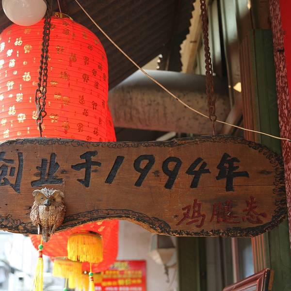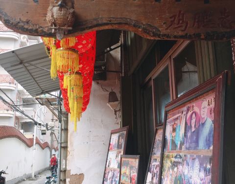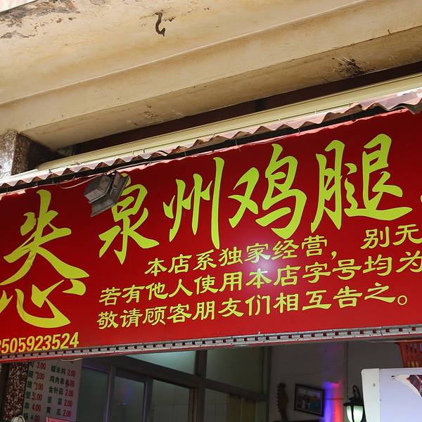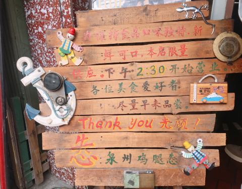 “怣”这个字念you,是这家店老板的小名,就单字叫“怣”。这个字在南音唱词里经常出现,发音介于“旺”跟“瓮”之间,是“憨”“傻”的意思。旧时是贱名,民间认为起贱名孩子好养。不少美食爱好者慕名而来,有的则是纯粹是冲这个字来的。这家店的鸡腿酱汁很浓厚,香甜可口,一口咬下去,满嘴都是花生酱的香味。
