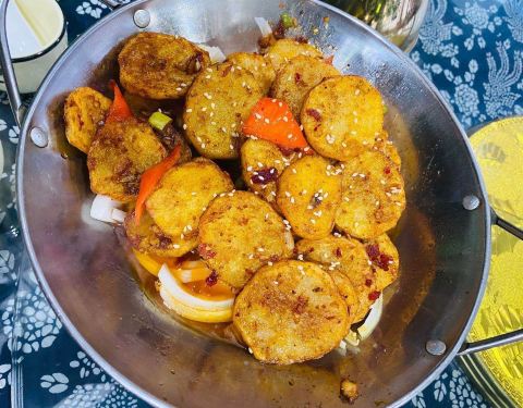 老板娘人美好说话,从网上搜到电话,亲自来接的我们,菜味道真的很棒,尤其推荐孜然羊肉,必点,就是来的有点早了,人很少,好多地都没开门,下次来一定还住她这,吃她家,很满意的一次旅行。