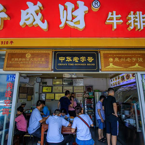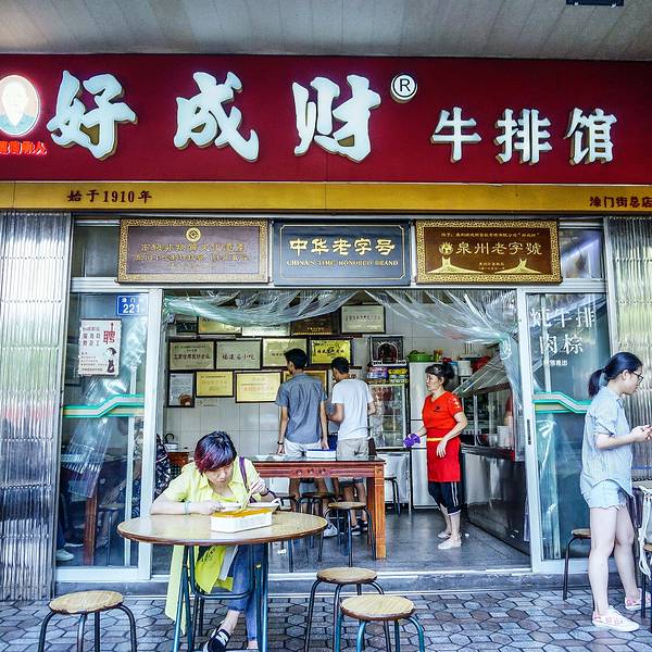 地址 : 泉州 市鲤城区涂门街221号走在 泉州 街头,随处可以看到不少专门经营牛肉的餐馆和摊档,当地人把牛肉、牛杂做成牛排、牛肉羹、牛肉汤、牛杂汤、卤牛肉等多种吃食售卖。按照 泉州 人习惯的吃法,一碗咸饭、一块牛排、一碗牛肉汤或者牛肉羹,就是一顿美味的餐食了。第一次来 泉州 ,这些 泉州 老字号当然不容错过!作为餐馆的灵魂牛排味道好坏的关键在选材和调味。好成财的牛排是连着肋骨的那一块肉,焖炖的酥软入味,牛肉的香气中夹杂着一些中草药的味道,味道有点像南洋地区的肉骨茶, 泉州 地区夏季炎热潮湿,气候和南洋相差不多,加进中草药的目的除了有去腥增香的作用,这里也充分体现了 中国 饮食传统中的滋补与食疗的理念。店家的牛肉羹味道也不错,吃下来总体的感觉几乎和在马来吃的简餐没有差别,其中细微的差别各位有机会还是亲自来品尝一下才好区别。