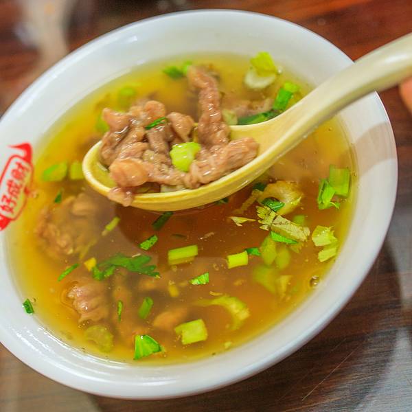 - 牛肉羹的汤比较稠- -些,但是也很好喝,店就在关帝庙对面很好找,来泉州玩的小伙伴们可以去品尝一下