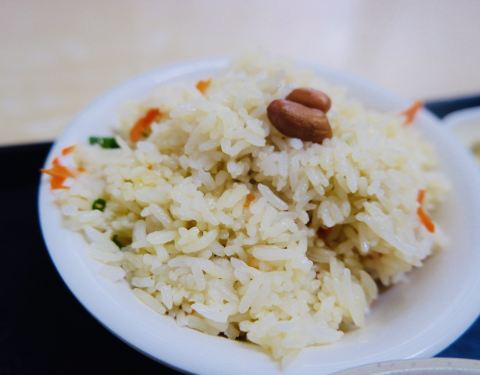 搭配的咸饭里有些许花生粒,口味也确如起名的“咸”,吃起来怪怪的,