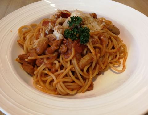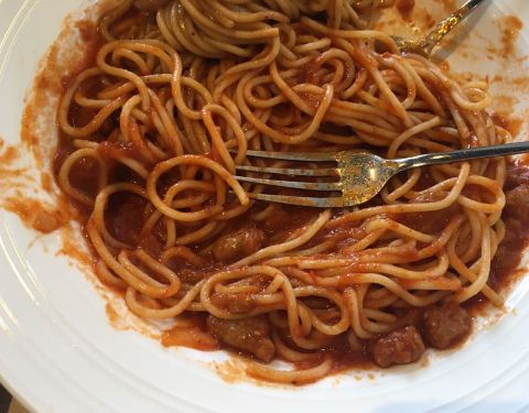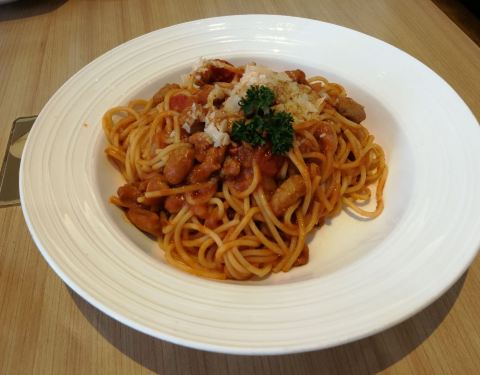 我们两个人每人要了一份黑椒牛排,共吃一份经典肉酱意大利面。黑椒牛排一份吃不饱,肉比较薄,再搭配半份意面正合适。服务态度热情。