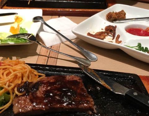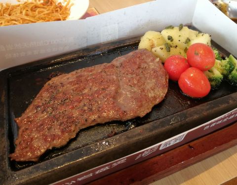 - 我们两个人每人要了一份黑椒牛排,共吃一份经典肉酱意大利面。服务态度热情