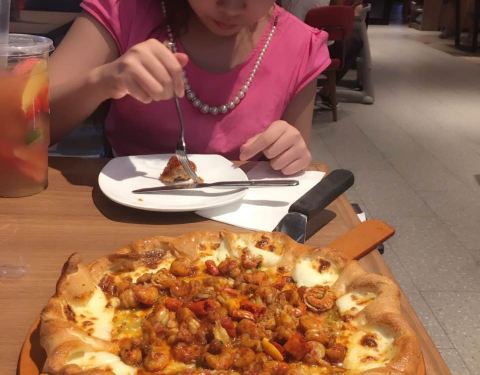 服务特别好,团的支付宝上的披萨,又在店里点的其他东西,因为第一次使用支付宝,结账的时候出了点小纰漏,工作人员发现失误后主动的一再道歉,其实我也不知道哪里出问题了,工作人员耐心的向我解释并最终找回了多扣的钱。服务态度真心很好,东西也很好吃,两个孩子吃的很开心。