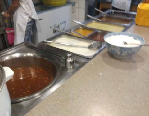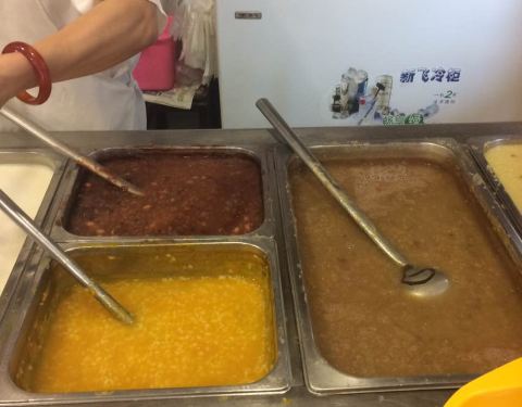 个人觉得他家粥比天府的好些,都是很粘稠不容易泄掉。胡辣汤隔一段喝喝也不错……鸡蛋和咸菜没天府的好吃。今天是小米汤和黑米粥两掺,喝着不错!