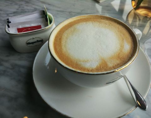哈根达斯,万达店,位于万达一楼,店内面积蛮大的,最大的好处是安静人少,本想喝杯咖啡的,边上的星巴克实在是有点吵,索性转站来这里。哈根达斯其实主要还是冰激凌制品为主,但即使是夏季,依旧并不太喜欢吃凉,也许真的是小时候吃太多的原因吧。拿铁一杯,味道般般,泡沫比价多,安静的坐会儿,目的已达到,感觉还是蛮好的,“充充电”,下午继续忙碌