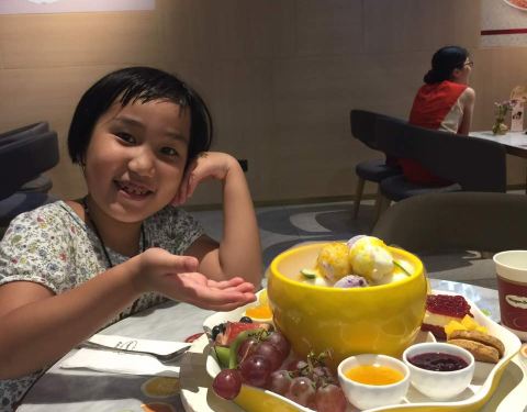 环境也很好,沙发很舒服,空调很足。坐下服务员就会给送一杯柠檬水,单球、脆皮条、迷你杯以前都吃过,这回选了莓果诱惑冰淇淋火锅。是一个拼盘,里面最下面是一圈冰淇淋球,有好多种口味,再上面一圈是马卡龙,蛋糕和水果串,确实很独特,味道也不错。另外还打包的三明治,两种口味,感觉三明治比脆皮条好吃一些。当然价格也是很贵的,比普通冰激凌贵很多