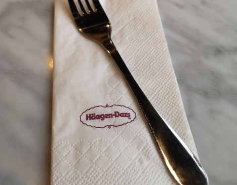 哈根达斯,万达店,经四路万达广场一层。万达广场最好的歇脚地儿。相较于隔壁熙熙攘攘的星巴克,这里好太多了。落座,一杯柠檬水奉上,一份小甜点,一杯饮品或是冰激凌球儿,人不算多,相对安静,个人最爱。虽然就味道而言,略有些差强人意,但其他的,无论是环境还是服务,都还是蛮喜欢的。临走打包一份甜品,提手袋,打包盒,再次赞一下他家的服务。