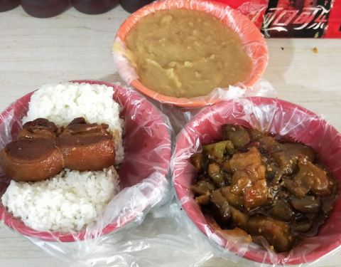 把子肉是经典,选了微辣味,鱼香茄子酸甜好吃,土豆泥比较稀。不过口碑很棒,一看就是正宗当地本土小吃店