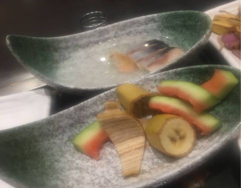 一家日本料理店!在大明湖附近。 这家店离大明湖超级近,环境不错好找。进店后在大厅大家拼凑在一起用餐,比较挤,就不是太舒适哦,价值400的双人套餐总体还是挺丰富的, 有我喜欢的法式鹅肝,红豆汤南瓜汤,风味蟹肉,菠萝牛排(其实是洋葱牛排),鸡排,油麦菜,菌菇等,其中点评试吃菜单写的培根炒饭1份,蔬菜炒面1份是都有的,结果店员说是选一个,我们要的蔬菜炒面,其实就是卷心菜超的,比较油腻。最喜欢吃烤虾和法式鹅肝了,虾都挺大的,鲜甜,但越嚼越香,鹅肝鲜嫩,入口即化,裹上火龙果和烤面包片相得益彰,口感棒棒的!还有免费的红豆粗粮粥特别好喝,又甜又香浓!还是挺好的!推荐