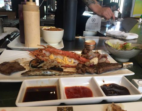 三木铁板烧,明湖路上,大明湖西南门,位置比较好找。198一位。但是七折买的500的卡,超级合适。三文鱼刺身新鲜无限量,自助式的,可以无限添加。费力牛排,铁板羊肉,羊排,绝对不会让你失望,反正我是吃到撑出来。。刺身,鱼类贝类,虾类,真的都不错