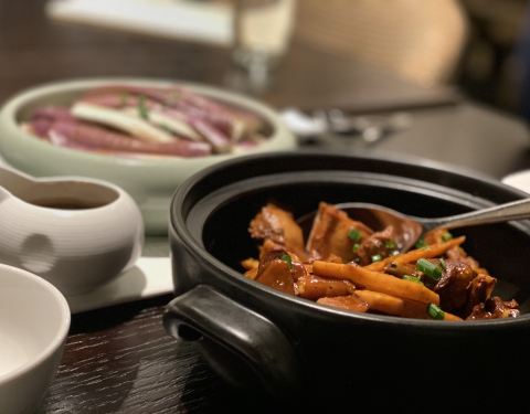 在慧心谷度假村,在度假村里景色很好味道不错都是湖州本帮菜虽说是度假村自己带餐馆还是很不错的价格也能接受老法三鲜58,太湖河虾118都还可以。