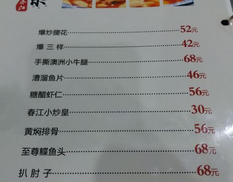 慕名来到春江吃饭,已是下午近一点了,但还有几桌食客,因我只一人点了几道量少的菜,特别说一下九转大肠,每次去山东必吃,这家口味上佳,摆盘精致,只是份量略少,但我一人吃足够了,还有海参捞饭,参脆汁浓咸...慕名来到春江吃饭,已是下午近一点了,但还有几桌食客,因我只一人点了几道量少的菜,特别说一下九转大肠,每次去山东必吃,这家口味上佳,摆盘精致,只是份量略少,但我一人吃足够了,还有海参捞饭,参脆汁浓咸鲜适中,本人推荐!好评!