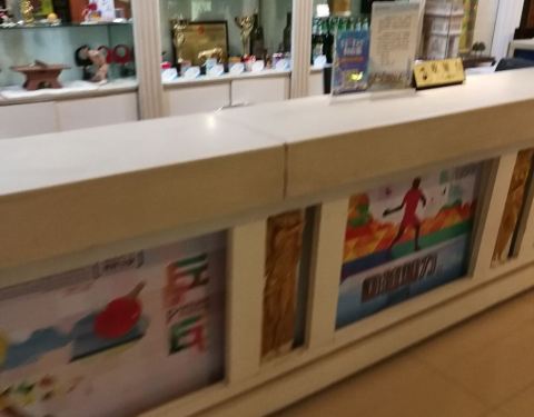 - 这是一家以乒乓球为特色的酒店,处处体现了乒乓元素,大厅里,酒店门牌,梳子等,中餐厅很大,估计住客很多