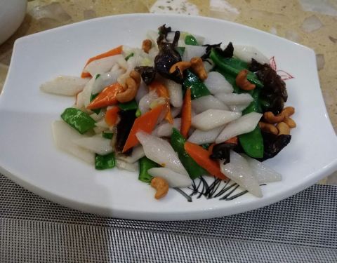 清清凉凉,干干净净,服务热情。独自晚餐,点了一份锅贴,胡萝卜馅的;点了小份海鲜疙瘩汤;点了一份青菜。饭菜味道很正,量足。