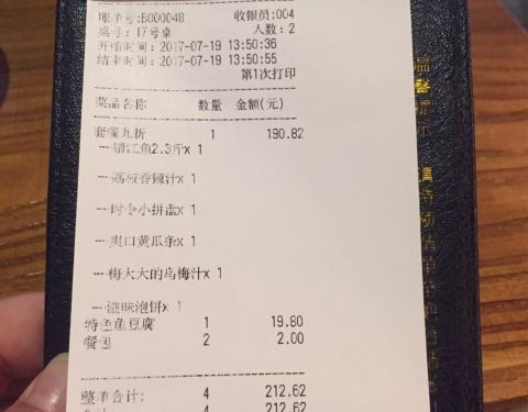 - 结账完便宜了21打了九折。来了两次了,这次感觉,荔枝香辣锅,有点太甜了……最后汤,浓浓的,味道不错