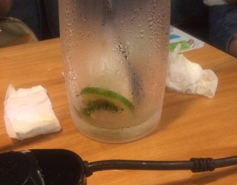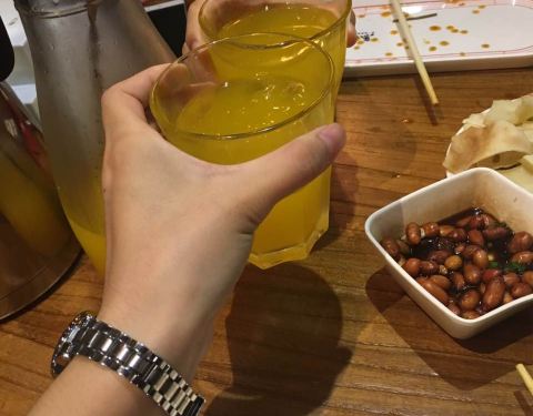 店里还有他们自制的饮品,味道嘛,感觉和雪碧差不多,只是颜色不同,还有就是加入了一些水果。