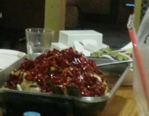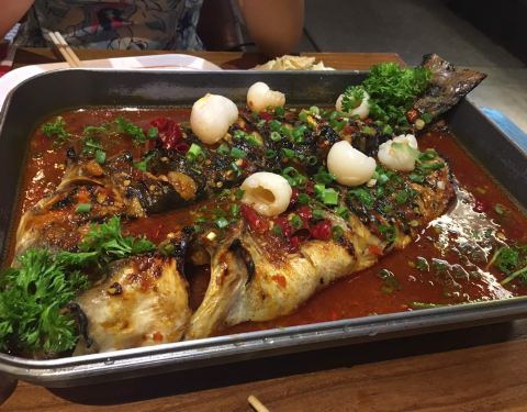 餐品:主要就是烤鱼类为主,有草鱼,鲫鱼。黑鱼等等,要了一个草鱼,二斤七两,是活鱼。自己可以去选择!量还是不少的,可以添加配菜,有腐竹,土豆,香菇,饼,等等……价格110.98元,酒水,饮料的另点,米饭两元一份。感觉鱼做的还行,麻辣的口味挺有味道,还是麻了一点,鱼肉还比较新鲜,不过还是感觉炒鱼好吃。