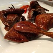 - ...店)推荐片皮鸭,两种吃法,除了常吃的甜面酱加大葱黄瓜,还有菠萝加芥黄酱有新颖的口味,鱼头汤不错