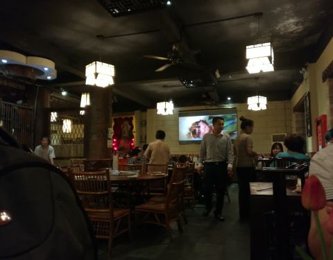 虽是云南菜的底子,却是清茶馆的格局,随处可见云南特色小玩意儿。墙上的印象画更深得人心,凸显了别样的异域风情。