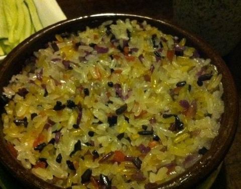 - 五彩米饭真的是由5中色彩的米共同煮制而成,非常的香糯软甜。藕夹和凉菜还不错,核桃包和开口笑也不错