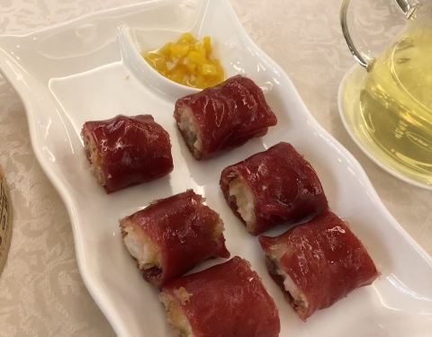 深圳第一顿早茶,龙虾面在竹筒里,看着不多一吃就饱,金沙红米肠,春卷内的虾肉很饱满,小朋友喜欢吃甜甜的咖啡冻,凤爪也是招牌了吧,几乎每桌必点。菠菜饺子意外好吃,小朋友最爱的黑金流沙包,口感细腻,一口...