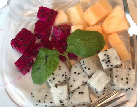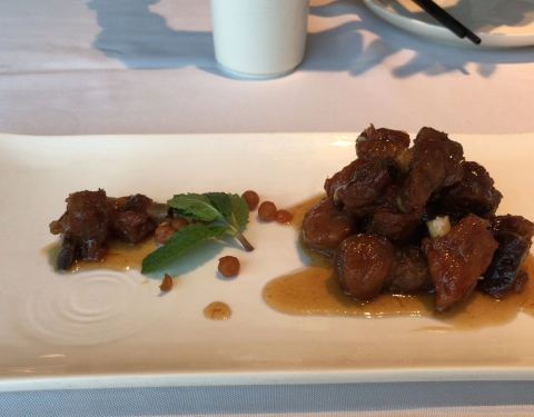 今晚两个人点了3个菜、2个小吃,都很棒:夹烧肉、芝士焗红薯、凉拌腰片、纸包牛肉、菌汤豆腐丸子,味道都特别棒,尤其是纸包牛肉很够味,就是份量有些少,才200克,如果有400克份量同样味道那就更好了,毕竟78一份的价格不便宜,送了饭后水果很赞。唯一不好的是要收10%服务费,香港那边是收服务费的,深圳毕竟不是香港,消费没有那么高,很少有收服务费的,希望商家在这些问题上能改进!