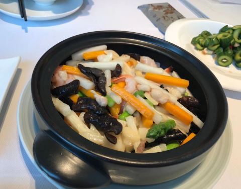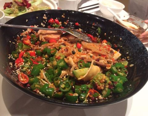 纸包牛肉挺好吃的,看着好多辣椒但是不怎么辣,牛肉量也挺足的,下饭比较合适。冬笋做成凉菜挺好吃的,鸡丝凉面和油泼面各有特色,非常的好吃。服务也好,装修也不错,适合宴请。