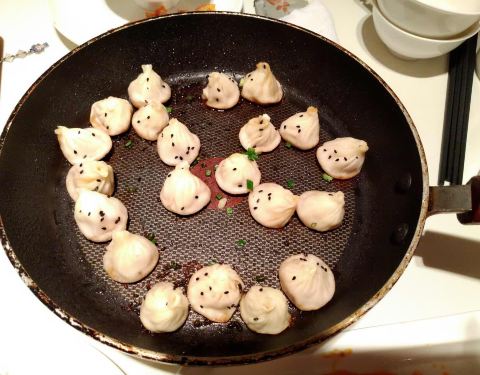 拇指生煎真的很mini,价格其实不便宜,合计2块一只,不过味道还行;毛血旺料挺足的,味也够,三个人吃够够的。五花肉一般般。