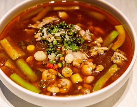 这家餐厅是深圳市从事川菜经营较早的企业之一,口碑颇佳。大厅和包间都很宽敞,门口摆着四川土特产供顾客选购,十分贴心。这里的招牌菜毛血旺点单率很高,麻辣鲜香,连配菜都十分美味;老坛子用凤爪制成,开胃爽口;水煮江团鱼刺少肉嫩味美;晾衣白肉造型独特,一片片白肉和黄瓜挂在架子上,还搭配了一小碗酱汁,吃起来十分特别。