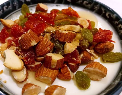 ...中规中矩,特别推荐同行友人介绍的坚果酸奶加蜂蜜,口感好酸奶酸度适中,以后酸奶多一个吃法,哈~~