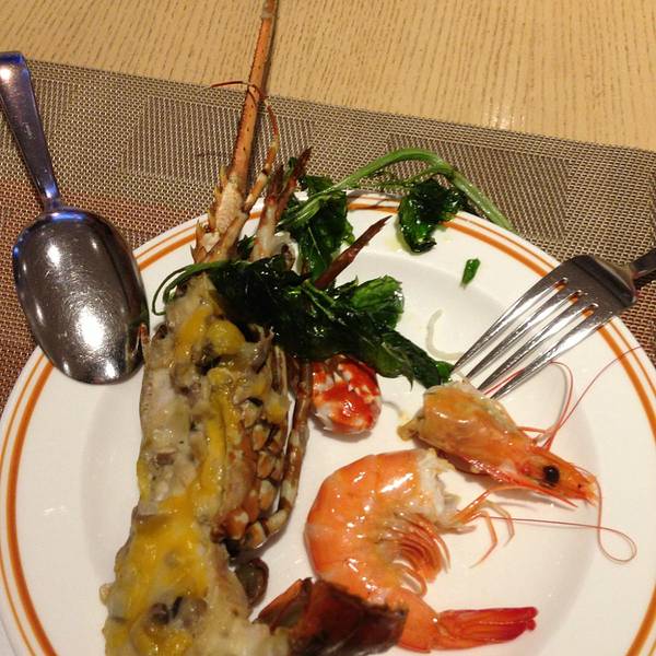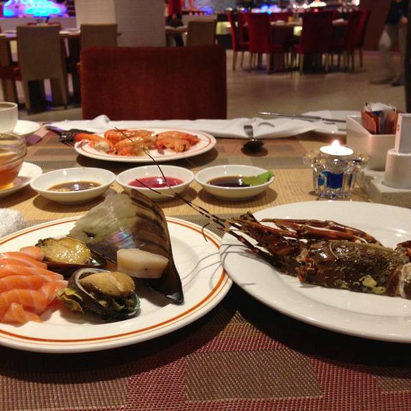 1、罗湖香格里拉附属的自助餐厅,位于香格里拉酒店的二楼,就在深圳火车站旁边,坐地铁到罗湖站,公交车到深圳火车站下就到,2、环境非常的不错,整体看过去不大,但是环境非常的优雅,服务员态度超级的好,告诉你不同的美食分区,红酒帮你倒好,收拾盘子也很快,比其他的酒店服务好多了,3、美食分为中式区、甜点区、海鲜区、日本料理区、西餐区、饮品区,菜式非常的丰富,海鲜非常的新鲜与丰富,青口、基围虾很好吃,没了上的也很快,大龙虾也不限量,不像别的酒店会某种产品一人只能拿一个,但是个人觉得大龙虾的肉不好吃,不嫩,中式菜的话生蚝烤的非常的好,也不限量哦,甜点做的很好吃、还有哈根达斯冰淇淋,但是很塞肚子,建议只吃一点点,4、价格比较贵,收15%服务费,人均400左右,有时候信用卡会打折,有时候会团购,