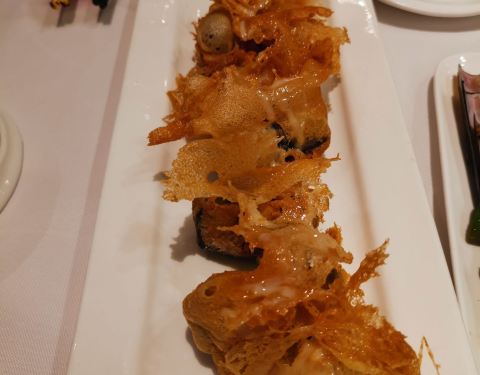 八卦一路的胜记分两个楼,一边装修精致些,大气些,包房宽敞些,另一边则是老房子,相对紧凑,包房很小且层高很低,略微局促。这次是在那个小包房吃的,点了些海鲜,价格还是比较亲民,6个人吃了1500多,有象拔蚌、带子、京葱焗缩骨鱼头煲、鹅肠等,口味都不错。其中那个鱼头煲还蛮噱头的,有人在一侧敲响铜锣,客人则手持剪刀给这道菜剪彩,够热闹。还会来尝尝别的菜的!