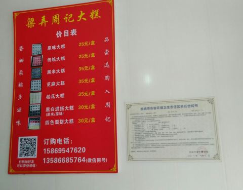 梁弄大糕在梁弄地区名气大啊!梁弄街上几乎都是大糕铺子,家家都说自己是最正宗。到了梁弄问了当地老人哪家好吃,老人们说的版本也是不一样的。 走在梁弄下街破落的老街上,发现了这家周记的老铺原址,在老铺的门脸上贴着迁过来的告示,于是就一路找到这家……
