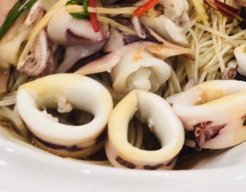 「煎焗竹肠」 裹面煨焗,过大油煎炸,油面皮儿又酥又脆,竹肠过油肥香无比,从中咬不断,一吃就是一大块,弹韧拗口,囫囵咽下去,太解馋! 「蒜茸蒸陈村粉」 湿嫩滑溜,入口滞舌,蒜香把粉带出了肉味,香喷喷大口吃,畅快淋漓~