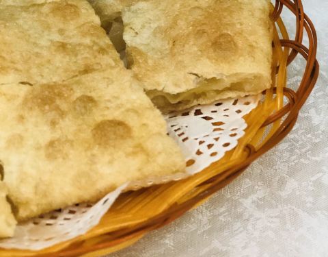 ...,油面皮儿又酥又脆,竹肠过油肥香无比,从中咬不断,一吃就是一大块,弹韧拗口,囫囵咽下去,太解馋