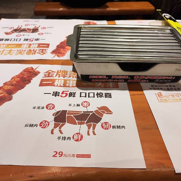 很多年前来深圳,吃过木屋烧烤,没想到几年后再来深圳,这家店开了这么多分店呢,就赶紧来尝一尝,毕竟记得之前吃,口味是很不错的。 [薄荷]环境: 环境一共两层,楼上外面的区域,很多人抽烟,所以还是坐在里面吧,一张张木头,果然很木屋。 [服务铃]服务: 这家店特色有一个超级辣的烤猪蹄,辣的太销魂了,推荐大家来试试。