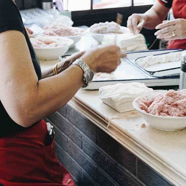 记忆力吃到的小馄饨是师傅骑着车担路过家楼下的,“笃、笃、笃……” 街弄巷口回荡着的馄饨担的敲梆声,那时候,沿路卖馄饨的师傅不用吆喝,大家一听到清脆的梆声,就知道“馄饨担”来了,一头是食柜,装着皮馅、包好的馄饨、佐料和碗盅;一头是锅灶木柴和汤水……之后为了便于行走又变成了“馄饨车”,发展至现在,“馄饨担”被固定下来摆摊驻店经营,而“长人馄饨”就是其中著名的老字号。