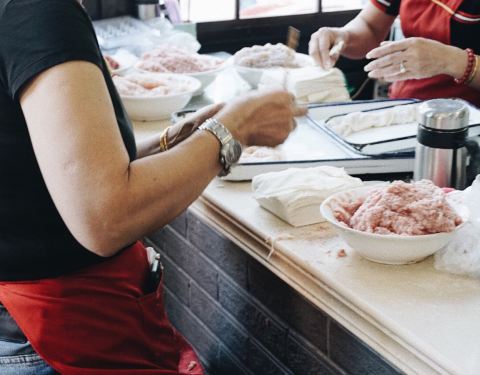 长人馄饨铺具有近百年的历史,是温州市民家喻户晓的传统名小吃之一,注重质、味、型、色的相结合,选用优质馅料、辅料,以其色泽鲜艳、口感清鲜、底汤清冽、久吃不厌而誉满温州。